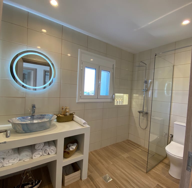 At Amelin Villa, we strive for balance and harmony between luxury and nature. The villa is carefully fitted out with solar panels which supply environmentally-friendly hot water during your visit, reducing our impact on the planet with minimal compromise to comfort.
